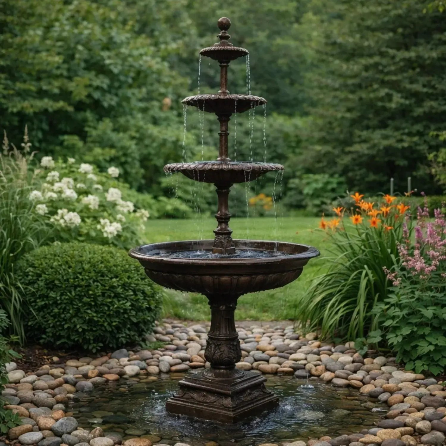Com quatro quedas d’água e acabamento rico em detalhes trabalhados, valoriza o ambiente e cria um efeito visual harmonioso. Fabricado em ferro fundido, oferece alta durabilidade e resistência, unindo beleza e qualidade em uma peça atemporal.
