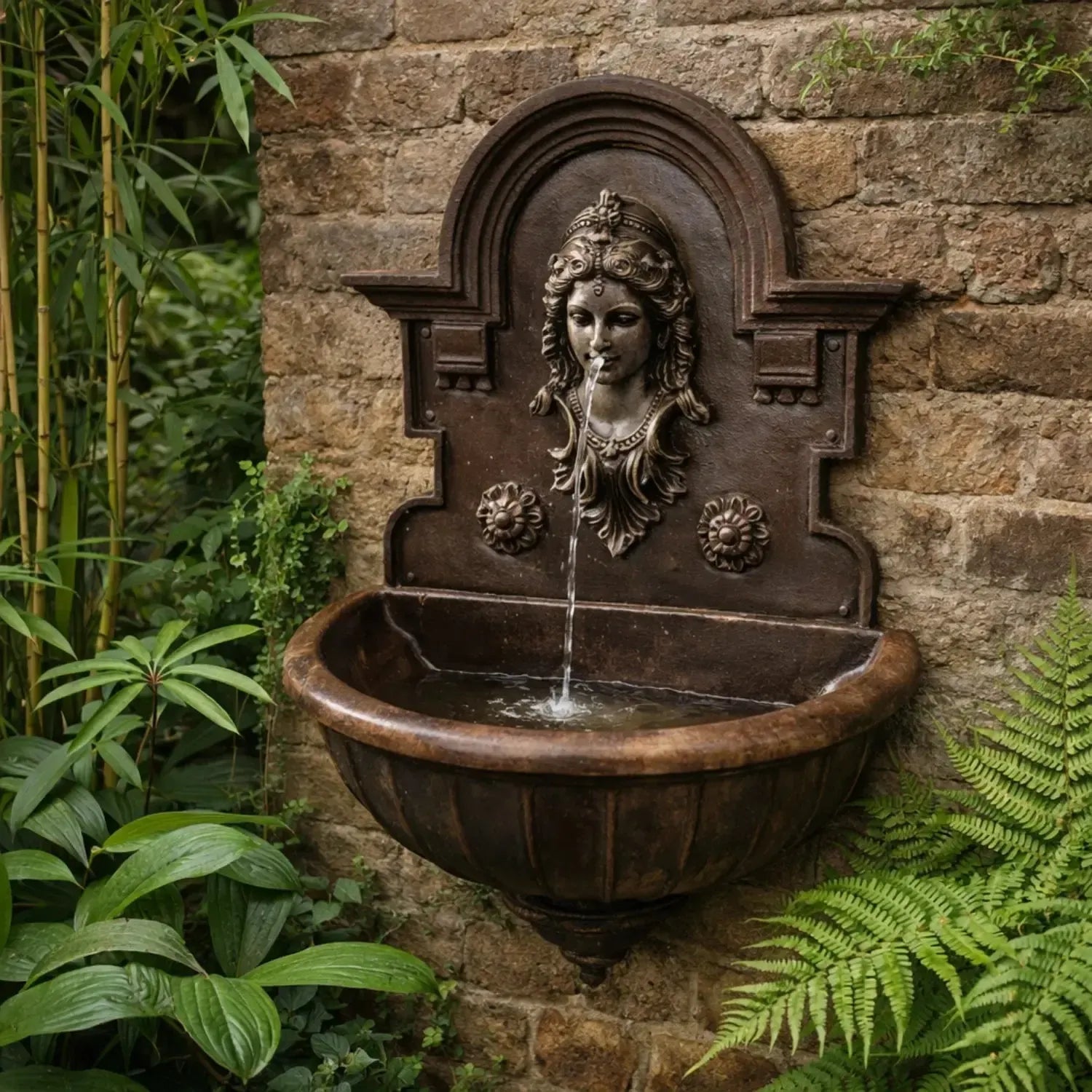A Fonte de Parede Índia em ferro fundido é uma peça decorativa que agrega beleza, expressão cultural e destaque ao ambiente, sendo ideal para jardins, áreas externas e entradas.